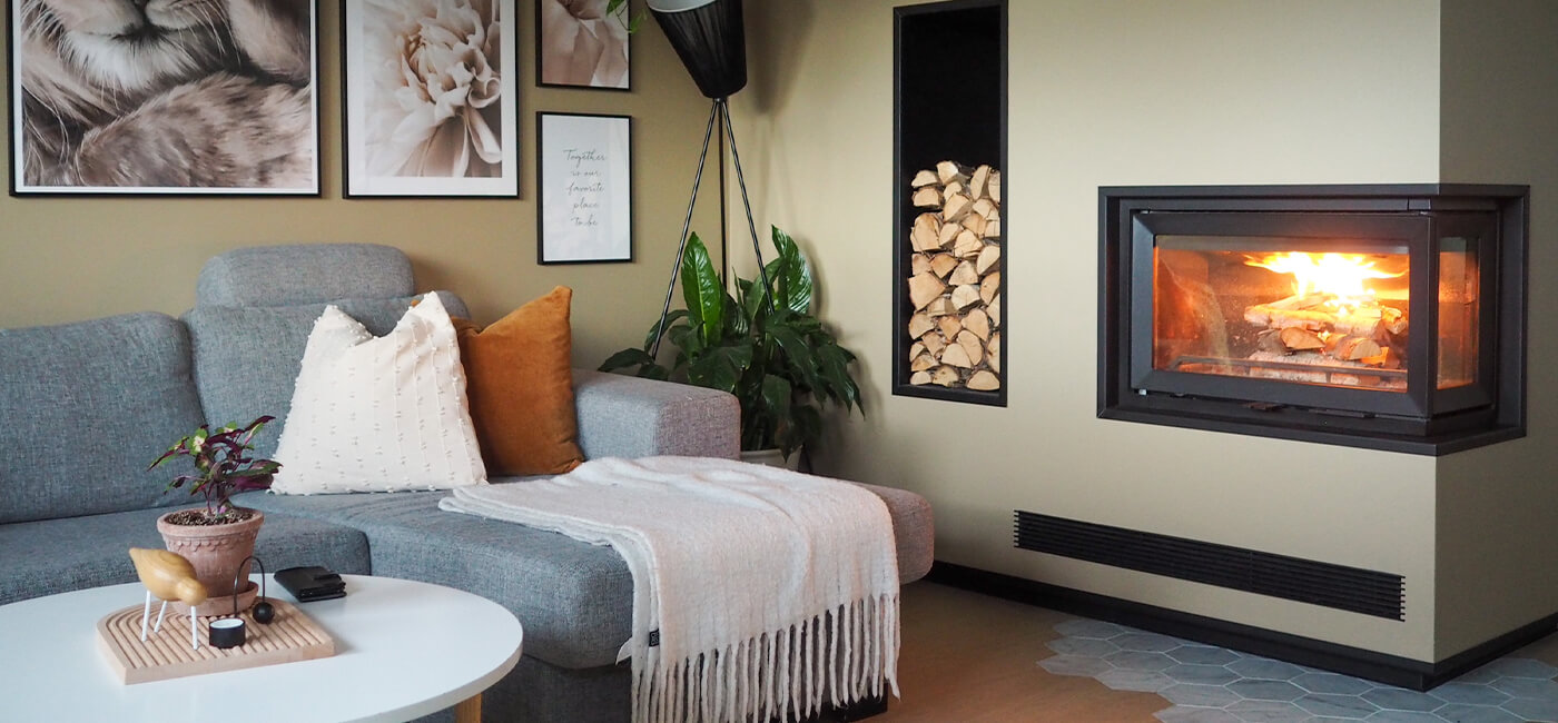 Som uddannet indretningsarkitekt har Karoline god sans for, hvordan den nyrenoverede stue med ny pejs skulle se ud. Med god hjælp fra en Jøtul-forhandler i nærheden faldt valget på pejseindsatsen Jøtul I 620 FR – en stor pejseindsats med glas på to sider, der passer perfekt i hjørner. Med en pejseindsats kan du desuden helt frit designe din egen pejseløsning. Der er mange muligheder i forhold til størrelse og glas på flere sider af pejseindsatsen samt brændeniche og farvevalg på pejsen.