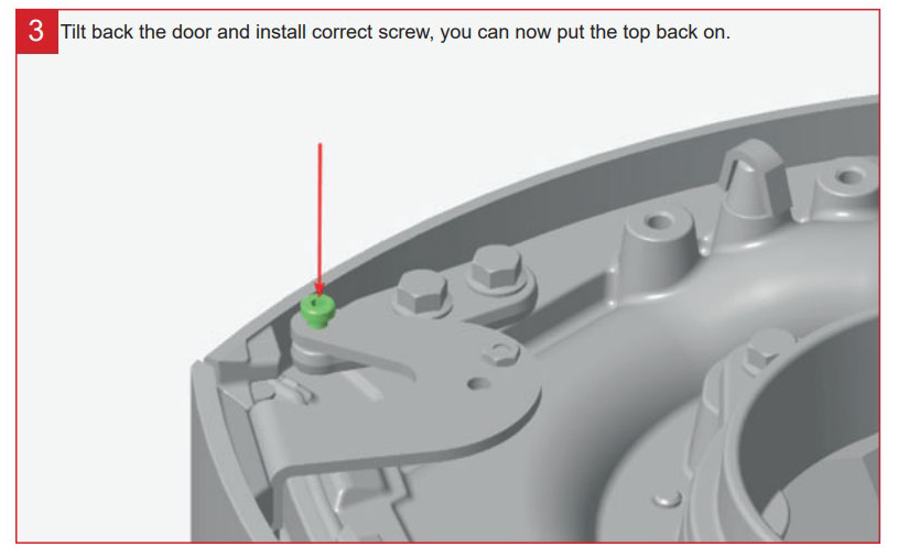 3. Udskift skruen og sæt toppladen tilbage på produktet.