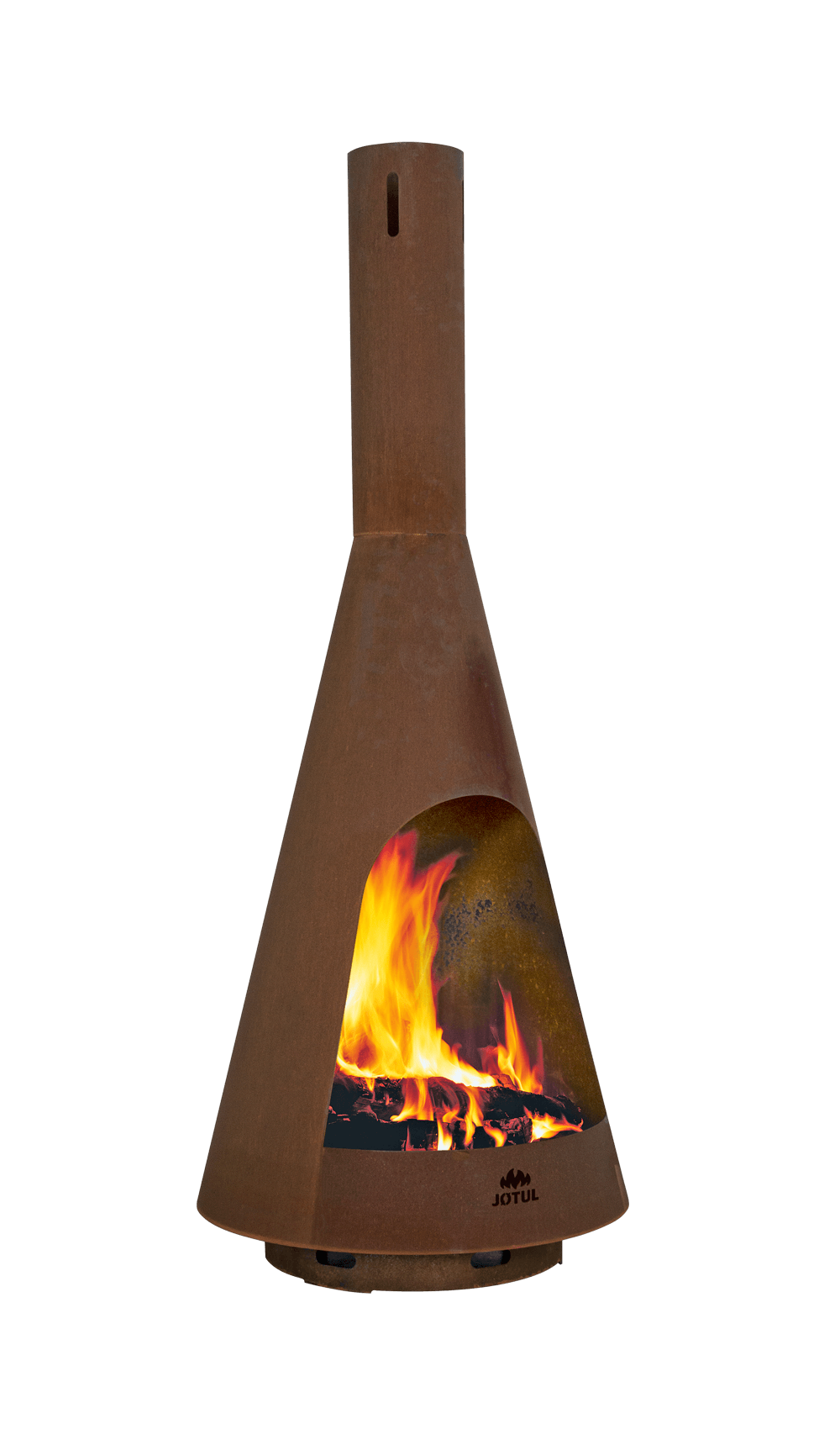 Tøv ikke med at bruge havepejsen, selv om termometret viser minusgrader. Med en Jøtul havepejs skaber du en hyggelig atmosfære og får et naturligt samlingspunkt i haven, uanset temperaturen. Varmen og lyset giver en god stemning i enhver social sammenhæng. Jøtul Frøya er produceret i Cortenstål og kan stå ude hele året.